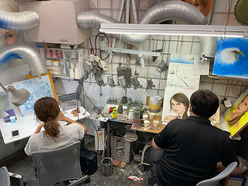 絵の描けない人も簡単なデッサンの練習から始め、エアーブラシによるペイントまで講習いたします。ペイント関係の仕事をしている方は、すぐにでも仕事に繁栄できることでしょう。